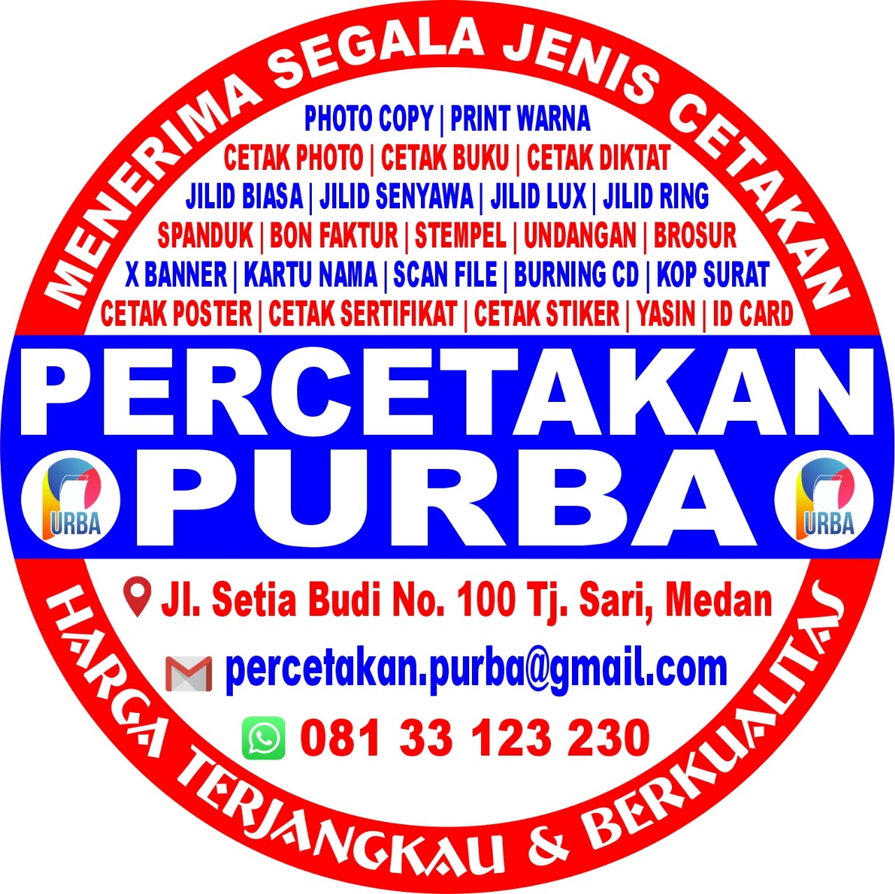 Percetakan PURBA Medan dapat dihubungi melalui kontak nomor telepon 08133123230