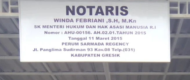 Kantor notaris di Kabupaten Gresik. Melayani pengurusan Sertifikat Tanah Kabupaten Gresik, sertifikat jual beli rumah, pengecekan sertifikat tanah dan rumah Kabupaten Gresik, pembuatan akta jual beli, balik nama, jasa AJB, validasi pajak, Surat Kuasa Membebankan Hak Tanggungan atau SKHMT, APHT dan lainnya.